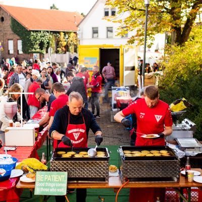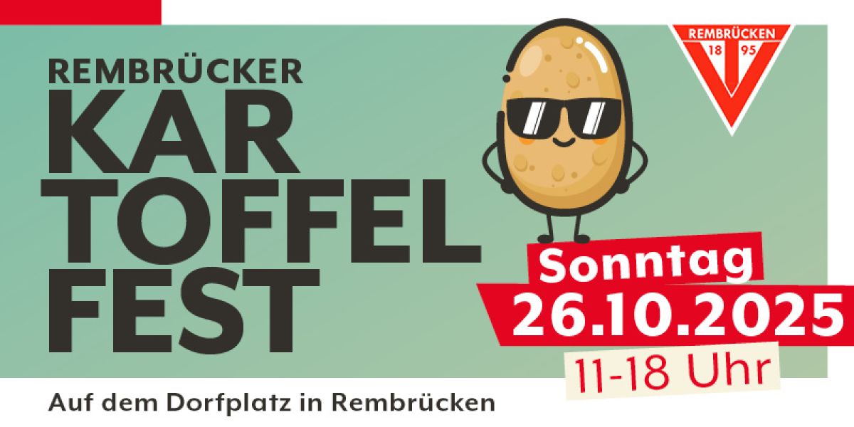 Am Sonntag, den 26. Oktober 2025, findet ab 11 Uhr wieder das herbstlich bunte Kartoffelfest des TV Rembrücken auf dem Dorfplatz zwischen Kirche und Alter Schule statt. Das vielfältige und leckere Essensangebot geht über die klassische Pellkartoffel mit Kräuterquark, Heringssalat oder Hausmacher Wurst weiter über goldbraun gebratene Kartoffelpuffer mit Apfelmus oder Lachscreme, ebenso wie den hausgemachten Kartoffelsalat mit oder ohne Würstchen. Aus der schon früh am Morgen angefeuerten Kanone gibt es die traditionelle Kartoffelsuppe; zum Nachtisch den beliebten selbst gebackenen Kuchen.